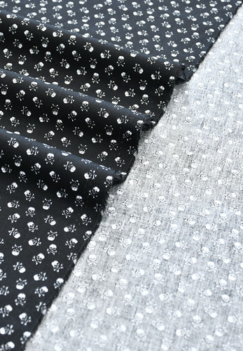 Рубашечный хлопок полотняного плетения черного цвета с черепами. Тактильно гладкий, жестковатый, тонкий. Просвечивает силуэт. Не тянется. Хорошо держит форму. Сминается. Шьем рубашки, платья, юбки и не только. Учитывайте возможную усадку.