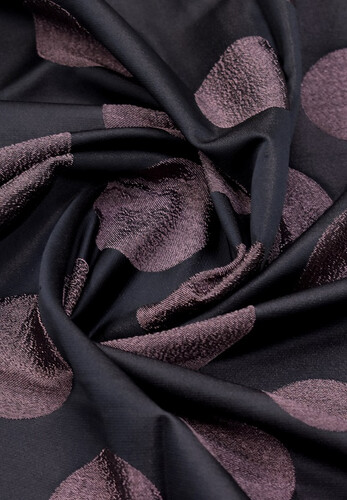 Ткань атлас жаккард горох черный c розовым костюмно-плательный