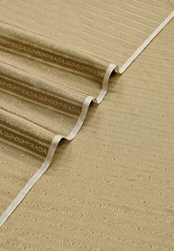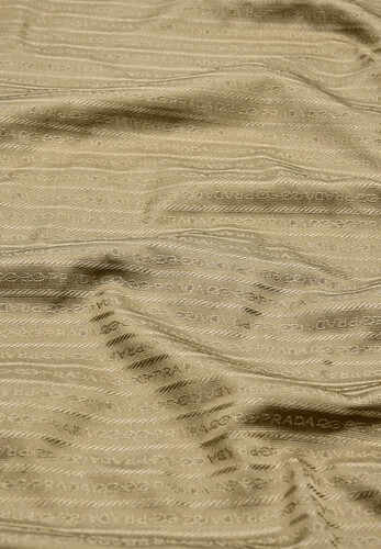 Итальянский подкладочный жаккард бежевого цвета. Ткань плотная, держит форму, фактурная с блеском. Для пошива сумок, шуб.