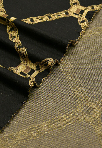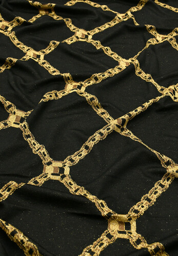 Вискозный трикотаж с эластаном принт "цепи". Не просвечивает, мягкий, эластичный, хорошо драпируется, средней плотности, немного тянется, подойдёт на лонгслив, платье, костюм. Цвет основы: черный слегка припыленный.