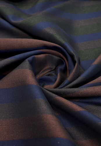 Шелк плательно-костюмный с купонным принтом в виде полоски с переходом. Основные цвета: синий, красный, зеленый. длина купона 2,08м. Не просвечивает, хорошо драпируется, поверхность с блеском. Итальянский шелк подойдет для пошива платья, , юбки, жакета, брюк. Цена указан за 1м. причина скидки -дефект затяжки