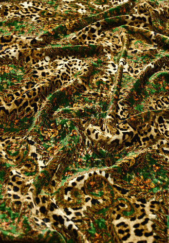Ткань шелковый бархат Gucci с леопардовым принтом и узором пейсли Ткань средней плотности, мягкая, струится, шелковистая, очень приятная тактильно. Отлично подойдет для пошива платья, костюма или юбки.
