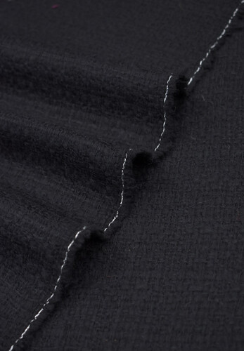 Прекрасный шерстяной твид шанель черного цвета. Шероховатый и суховатый наощупь. Слегка чувствуется фактура наощупь. С красивым лоском. Тонкий. Плотный. Не тянется. Не просвечивает. Не мнется. Хорошо драпируется, держит форму. Пластичный. Прекрасно подойдет на костюмные варианты, жакеты, юбки, платья. Уход деликатный.