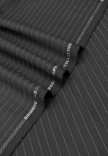 Созданная на фабрике известного бельгийского производителя костюмных тканей, компании Baharive , эта ткань черного цвета в тонкую белую полоску – идеальный выбор для создания элегантных костюмов.