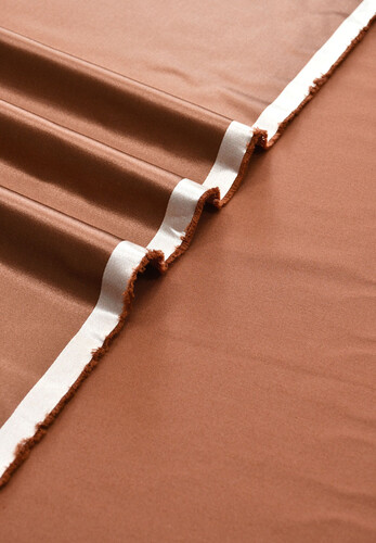 Ткань тафта из смеси шелка и вискозы в бронзовом оттенке . Ткань приятная, средне формодержащая. Ткань отличается гипоаллергенностью, высокой гигроскопичностью, износостойкостью. Изделия выглядят дорого и впечатляюще: привлекают внимание благородным блеском и характерным шорохом при движении. Данный материал красиво драпируется, складки держат форму. Ткань идеальна для платьев, корсетов, костюмов, юбок и много другого.
