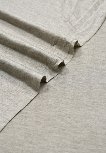 Итальянский трикотаж, в коричневом цвете с эффектом меланж. Трикотаж провязан лицевой гладью, мягкий, словно с начесом. Неплохо тянется, при растяжении не деформируется, легко возвращается в исходную форму. При сминании оставляет небольшие заломы. Срез не заворачивается, не просвечивает. Отлично подойдет для пошива лонгливов, летних худи, платьев и много другого.