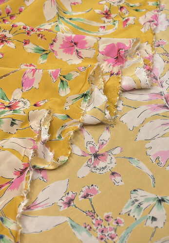 Плательная вискоза с цветочным принтом в сочетании розового и желтого цветов! Ткань с минимальным просветом, с контрастным рисунком, приятная на ощупь. Ткань подойдет для пошива блузки, сарафана, платья. Стильный принт, гармоничные тона. Ткань для Вашего удовольствия и Ваших творений!