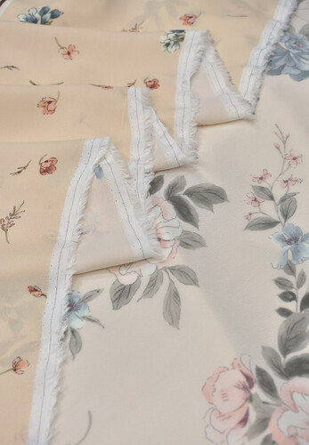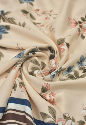 Плательная вискоза с цветочным принтом в сочетании персикового и синего цветов! Ткань с минимальным просветом, с контрастным рисунком, приятная на ощупь. Ткань подойдет для пошива блузки, сарафана, платья. Стильный принт, гармоничные тона. Ткань для Вашего удовольствия и Ваших творений!