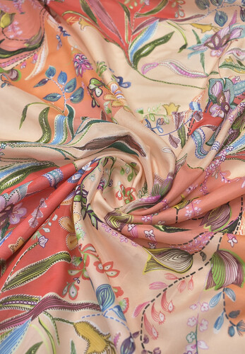 Плательно-рубашечный батист с добавлением шелка с принтом Blumarin. Ткань легкая, тонкая, воздушная, хорошо драпируется, имеет легкую прозрачность. Идеально подойдет для создания легкого летнего образа.