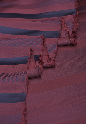 Шелк бордовый в полоску. Ширина полоски 27 мм. Полоска расположена вдоль кромки. Не просвечивает. Средней плотности. Прекрасно подходит для пошива платья-рубашек и любых других изделий.