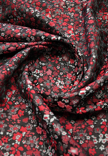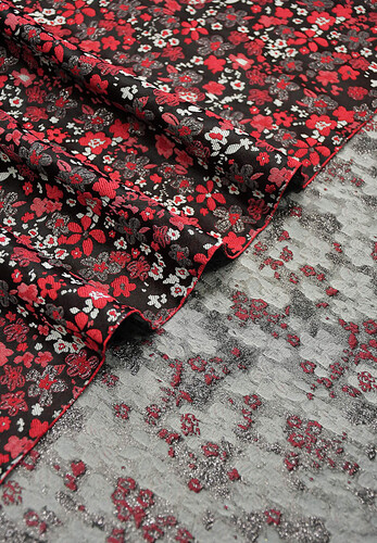Костюмно-плательный жаккард Marni на основе вискозы с добавлением полиамида и люрекса. Черная основа с цветочным узором. Ткань не плотная, довольно пластичная, хорошо драпируется и ниспадает, не тянется, не мнется. Для пошива жакета, юбки, платья