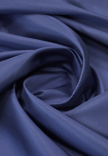 Тафта натуральный шелк синего цвета. Плотный, неплохо держит форму, хорошо драпируется, пластичный. Текстура гладкая, с роскошным блеском, приятная к телуИз силуэтов рекомендуем пышные платья с крупными мягкими складками, длинные юбки-солнце длины миди и макси, нарядные костюмы.