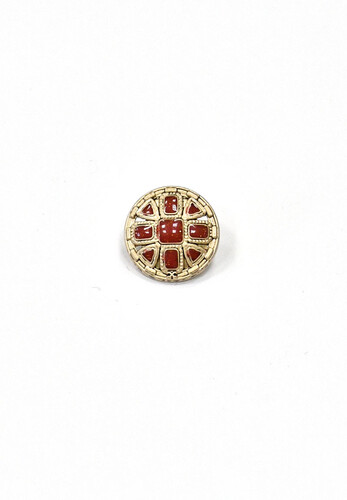 Пуговицы металлические золото темно-красная мозаика на ножке. Для отделки костюма, платья, пальто, тренча, куртки. Размер 18 мм. Цена за 1 пуговицу.