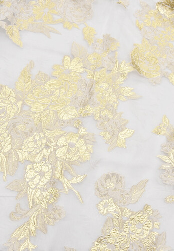 Органза с вышивкой золотые цветы на белом (DG-0253)