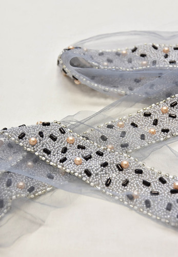 Роскошная итальянская тесьма в серо-голубом оттенке, вышивка бисером и хрустальными стразами на сетке. Очень красивая, в меру блестящая, выглядит утонченно, женственно, элегантно. Это может сделать любую вашу продукцию оригинальной и интересной. Идеально подходит для вечерних, свадебных и повседневных нарядов. Используйте тесьму в качестве отделки для жакета, вечернего платья или пальто. Тенденция состоит в том, чтобы использовать тесьму вместо пояса. Это поможет вам сосредоточиться на новой модной тенденции и подчеркнуть линию талии.