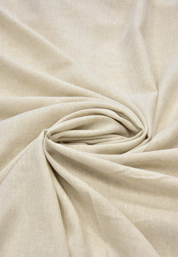 Рубашечный лен светло-бежевого оттенка с эффектом меланж. Тонкий, легкий, отлично драпируется. Идеален для летних изделий - рубашки, туники, сарафаны, юбки и др. Материал обладает высокой воздухопроницаемостью, поэтому в вещах, изготовленных из этой ткани, летом никогда не бывает жарко. Ткань очень комфортная и приятная на ощупь, по этой причине хлопковые вещи никогда не вызовут аллергических реакций. Max Mara