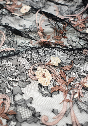 Гипюр с вышивкой, на черном фоне цветочный узор в пудрово-розовых тонах. Ткань стрейчевая, легкая и мягкая, она великолепно драпируется и идеально подходит для любых силуэтов. Особенно красиво смотрится в элементах одежды без подкладки (рукава, спинка, лиф, подол платья). Гипюр подойдет не только для вечерних луков, но и повседневных блузок, юбок, боди, топов.
