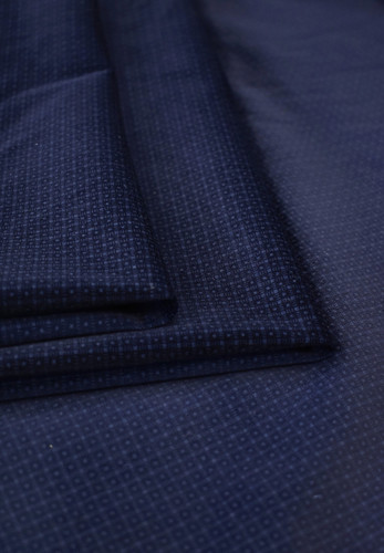 Хлопковый бархат стрейч в благородном чернильно-синем оттенке. С рисунком в мелкую клеточку. Имеет красивый матовый блеск. Полотно с коротким ворсом, бархатистое на ощупь. По текстуре плотное, немного держит форму.За счет эластана ткань может прекрасно облегать, подчеркивая женственность силуэта, кроме того изделия будут удобными и меньше подвергаться сминанию. Рекомендуем для элегантных костюмов, брюк, юбок, платьев. Модный тренд - бархатный пиджак удлиненного кроя, который отлично подойдет к любому луку. По желанию его можно украсить брошью или выполнить отделку тесьмой. Armani