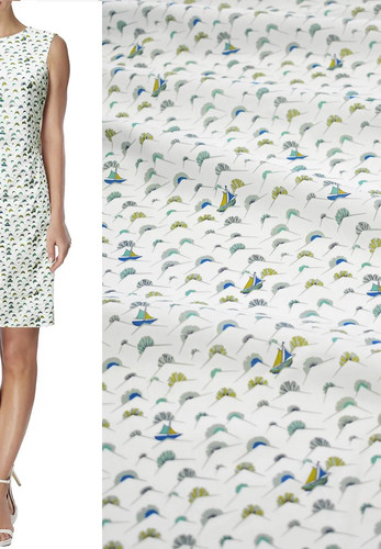 Хлопок с мелким рисунком - на белом фоне пейзаж с корабликами. Ткань тонкая, легкая, рубашечная. Слегка просвечивает. На ощупь нежная, мягкая, приятная, с гладкой матовой текстурой. Великолепно подойдет для женских, мужских, детских рубашек. Отличный вариант для летних блузок и легких сарафанов. Хлопок не содержит эластана, рекомендуем выбирать не облегающие изделия, а более прямого и свободного кроя. Хорошо будут смотреться платья-рубашки в стиле оверсайз.
