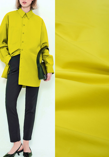 Хлопок стрейч желтый. Легкая ткань с хорошей эластичностью. Не просвечивает. На ощупь мягкая, пластичная. Имеет гладкую текстуру с красивым матовым блеском. Нежная и приятная к телу. Подойдет не только для рубашки, но и платья, блузки, летнего сарафана, туники, платья-рубашки.